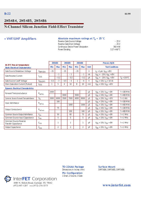 2N5484, 2N5485, 2N5486