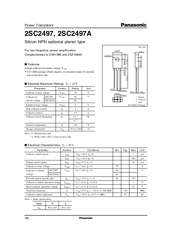 TO-126B package which requires no insulation plate for installation to the heat sink