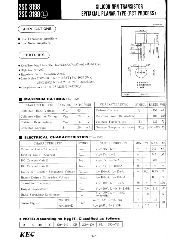 Datasheet 2SC3198 Specification