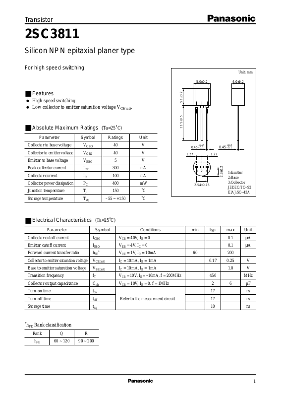 Silicon NPN epitaxial planer type