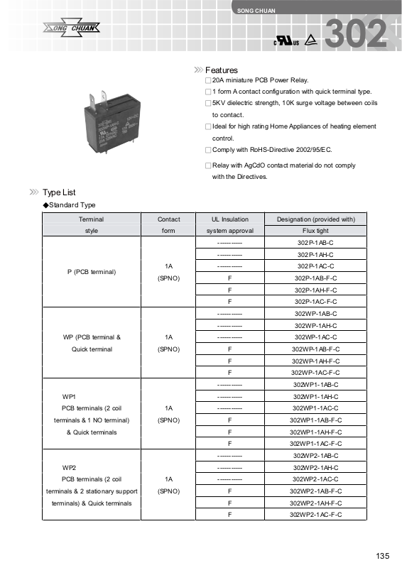 WP (PCB terminal & 1A ----------- 302WP-1AC-C