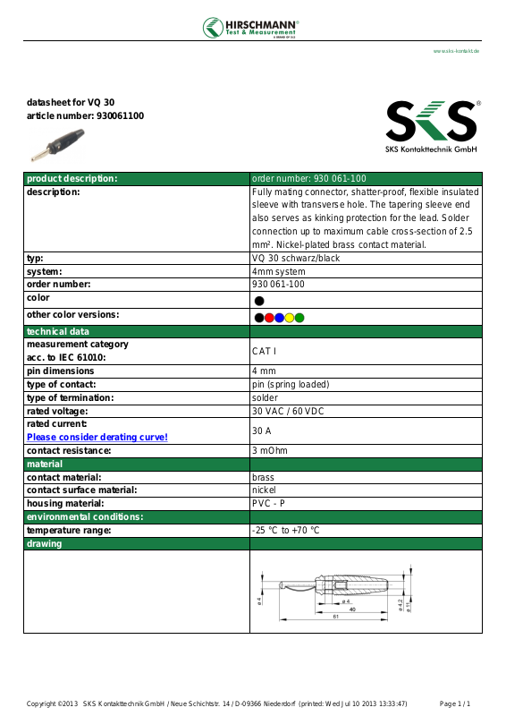 Copyright ©2013 SKS Kontakttechnik GmbH / Neue Schichtstr. 14 / D-09366 Niederdorf (printed: Wed Jul 10 2013 13:33:47) Page 1 / 1
