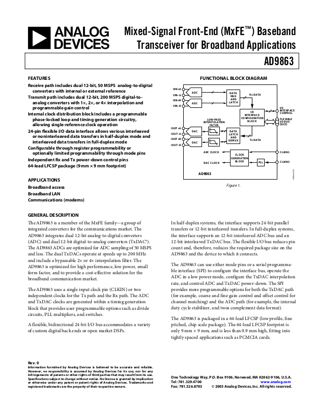 AD9863 integrates dual 12-bit analog-to-digital converters