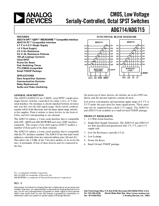 The ADG714/ADG715 are CMOS, octal SPST (single-pole,