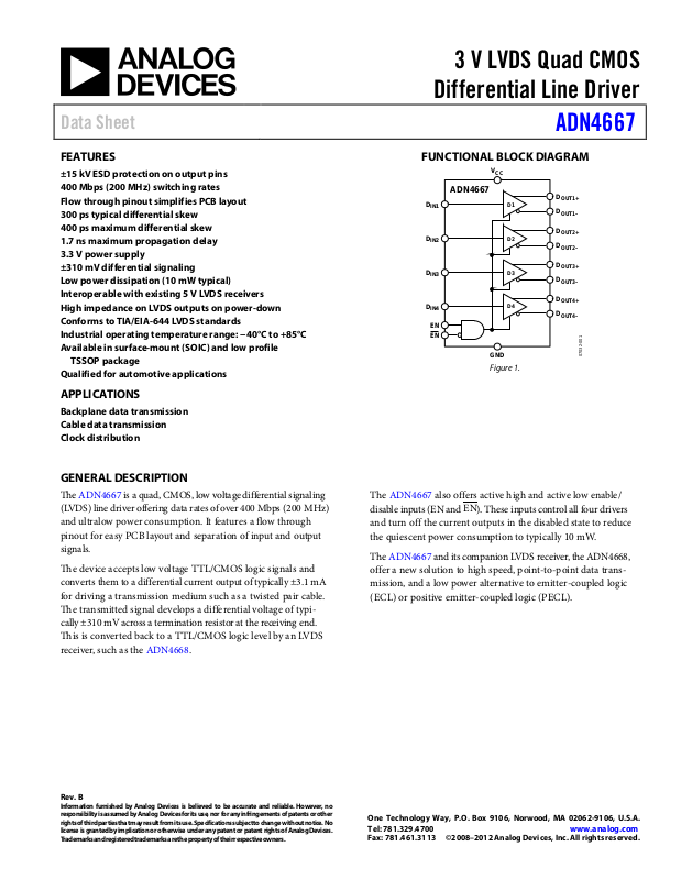 The ADN4667 and its companion LVDS receiver, the ADN4668,