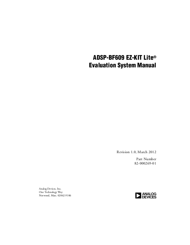A-2ADSP-BF609 EZ-KIT Lite Evaluation System Manual