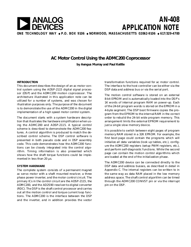 code. This code demonstrates how the ADMC200 functions can be closely integrated into the control algorithm. Timing information is also presented which
