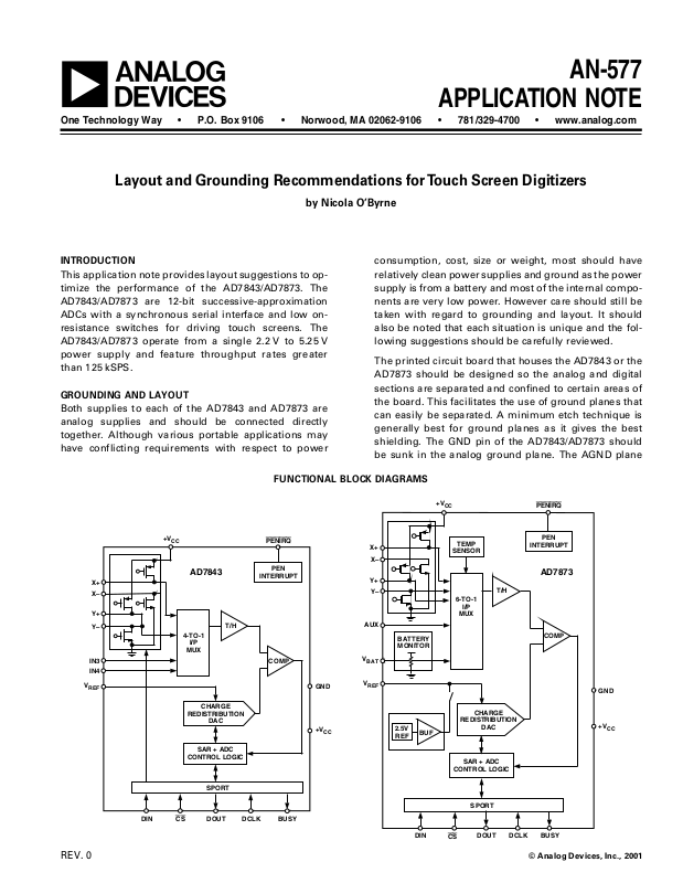 This application note provides layout suggestions to optimize the performance of the AD7843/AD7873. The