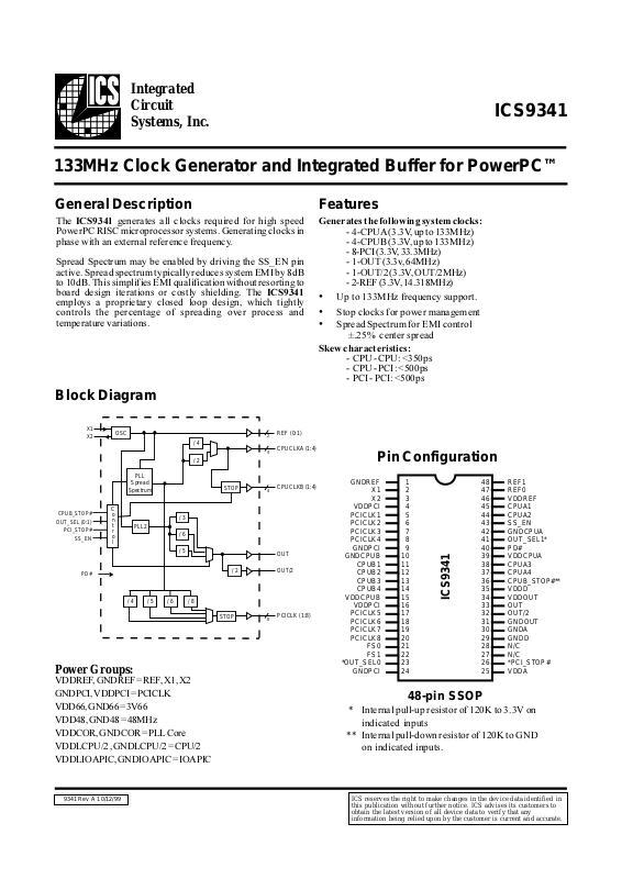 133MHz Clock Generator and Integrated Buffer for PowerPC™