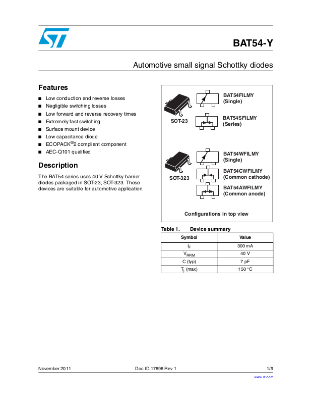 BAT54SFILMY88YSOT-23 Serial10 mg