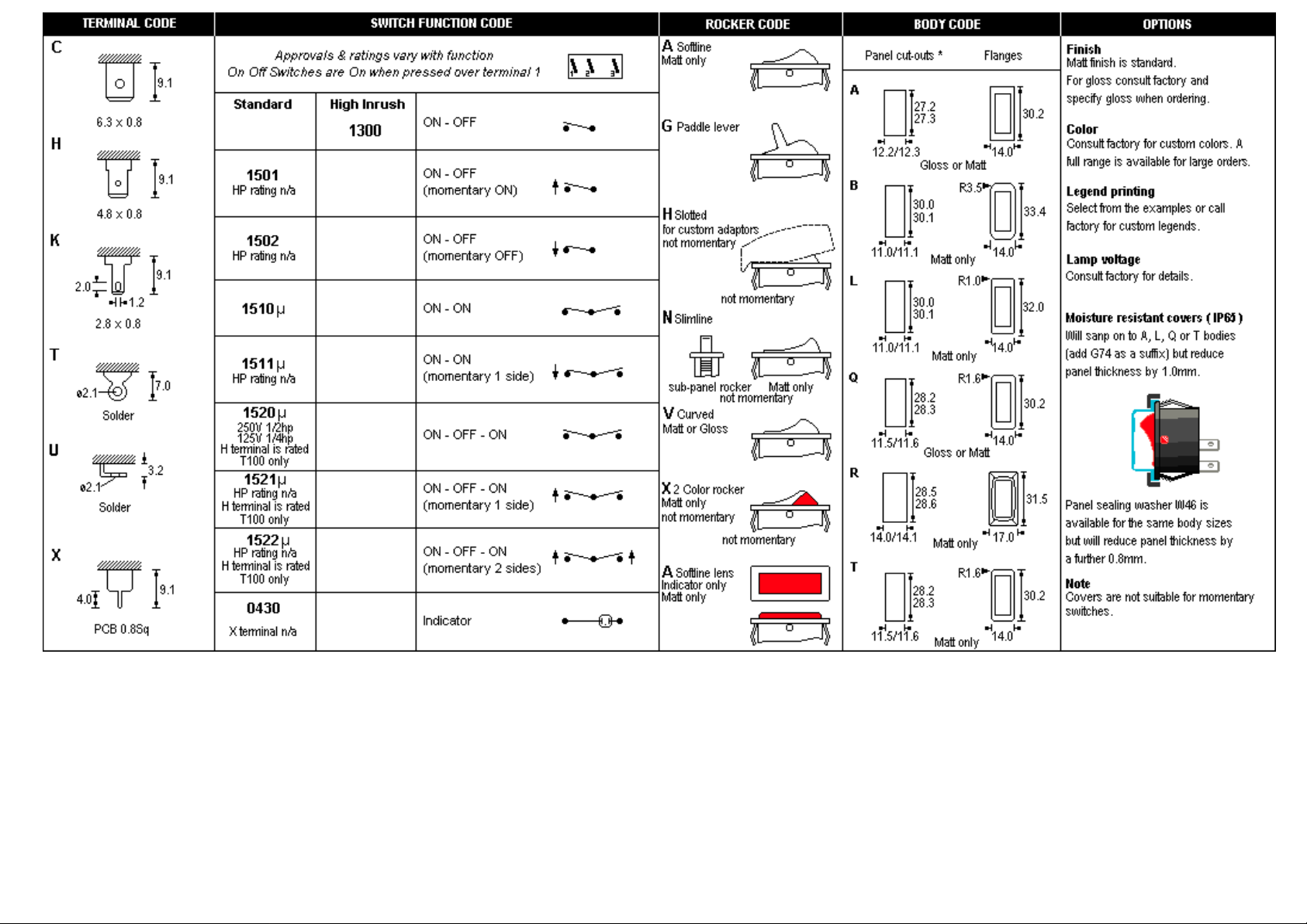 The details shown apply to all Switches and Fuseholders. For electrical products, Indicators or IEC