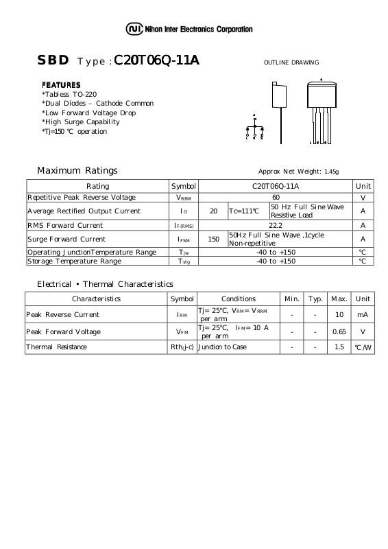 Thermal Resistance Rth(j-c) Junction to Case - - 1.5