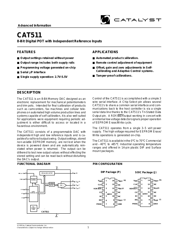 ESD Susceptibility 2000 Volts MIL-STD-883, Test Method 3015