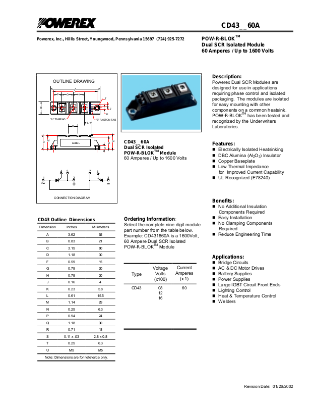 Powerex, Inc., Hillis Street, Youngwood, Pennsylvania 15697 (724) 925-7272