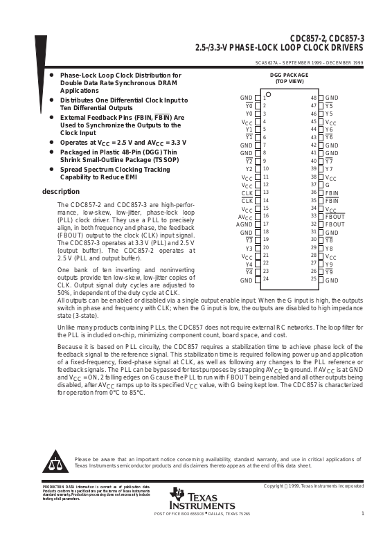The CDC857-2 and CDC857-3 are high-performance, low-skew, low-jitter, phase-lock loop