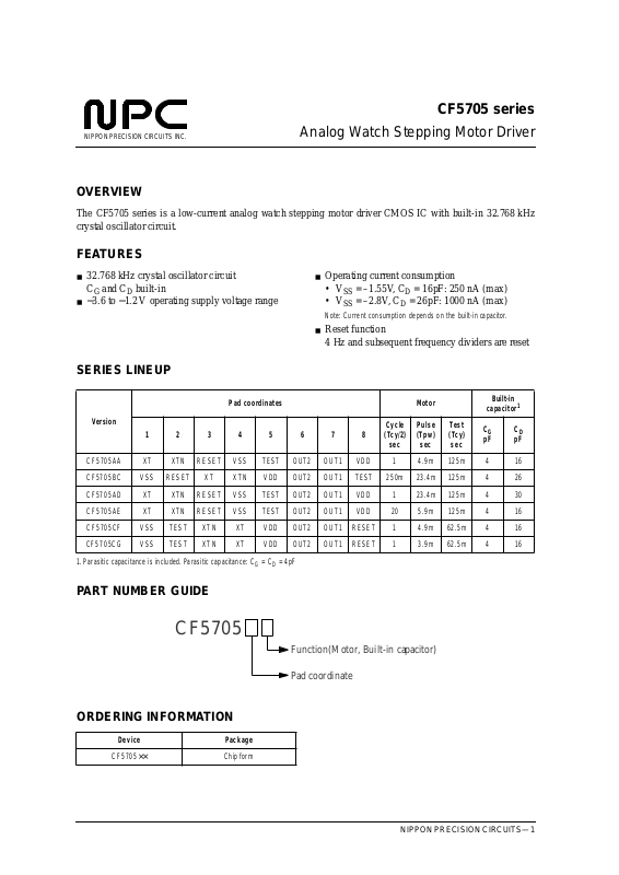 improve the design or performance and to supply the best possible products. Nippon Precision Circuits Inc. assumes no responsibility fo r