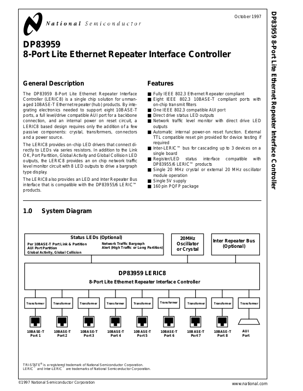 DP83959 8-Port Lite Ethernet Repeater Interface Controller
