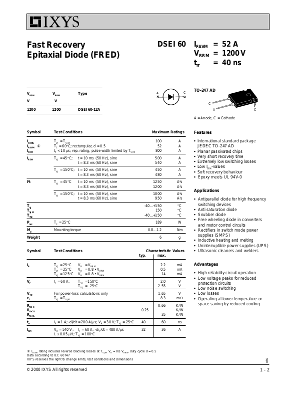 ① TC = 60°C; rectangular, d = 0.5 52 A