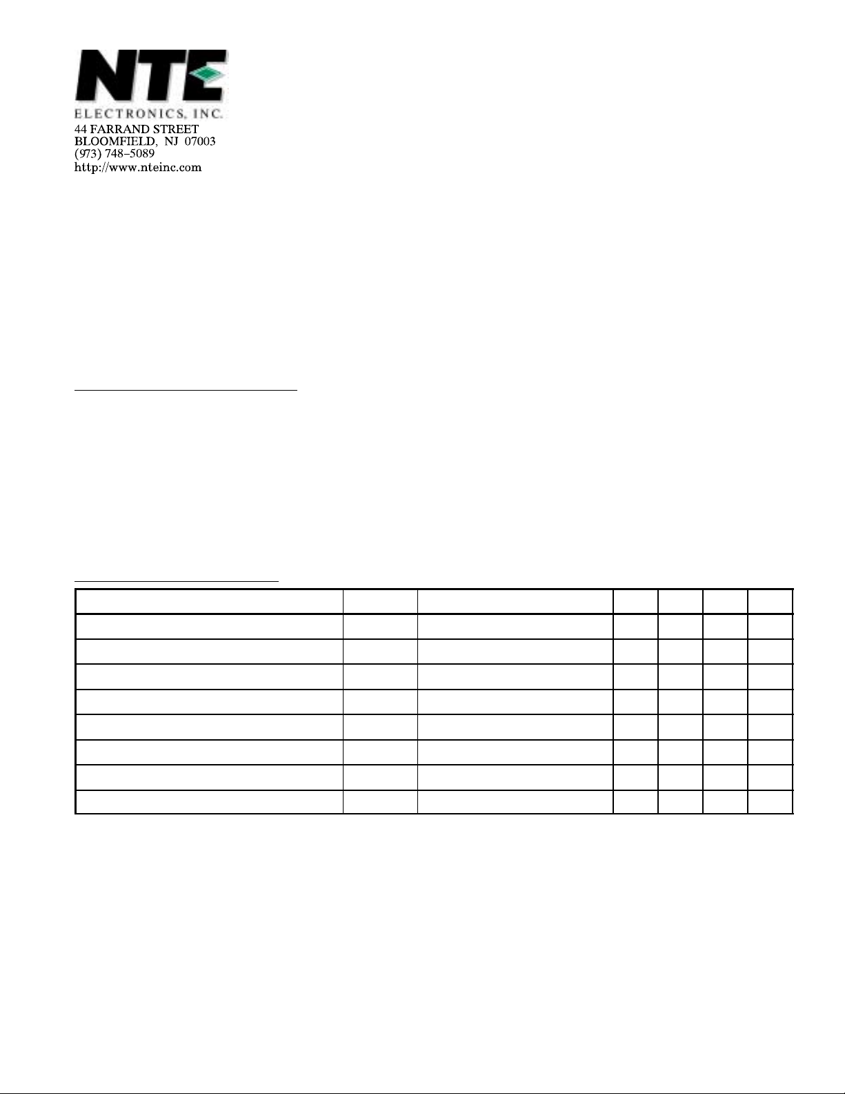 Electrical Characteristics: (TA = +25°C unless otherwise specified)