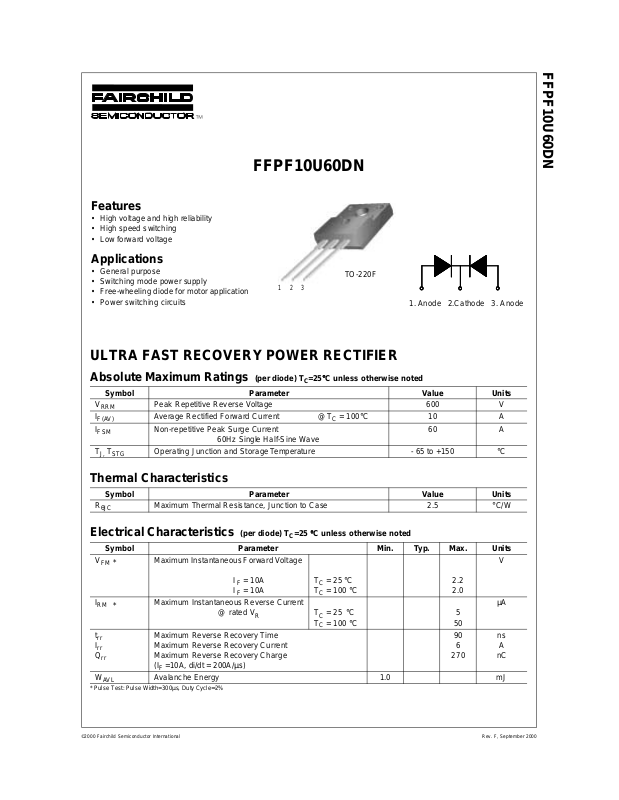 ULTRA FAST RECOVERY POWER RECTIFIER