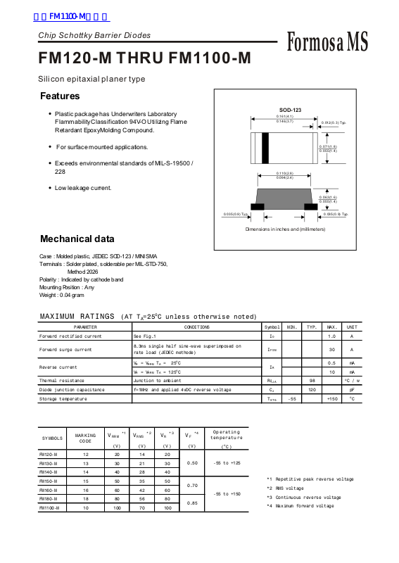 Case : Molded plastic, JEDEC SOD-123 / MINI SMA