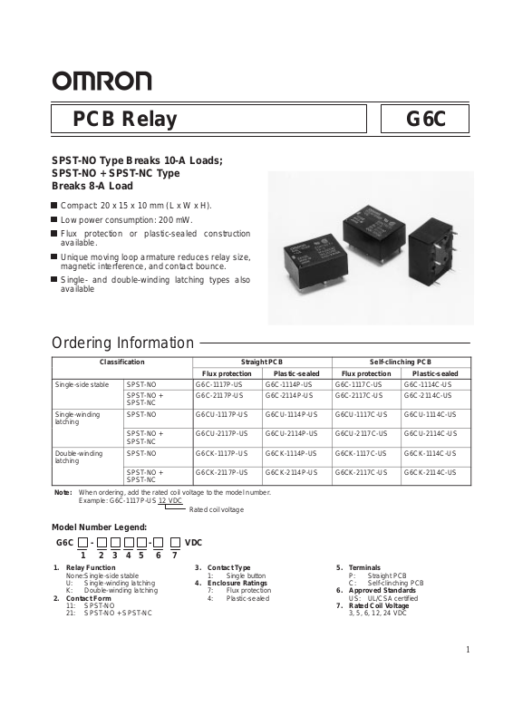 SPST-NO G6C-1117P-US G6C-1114P-US G6C-1117C-US G6C-1114C-US
