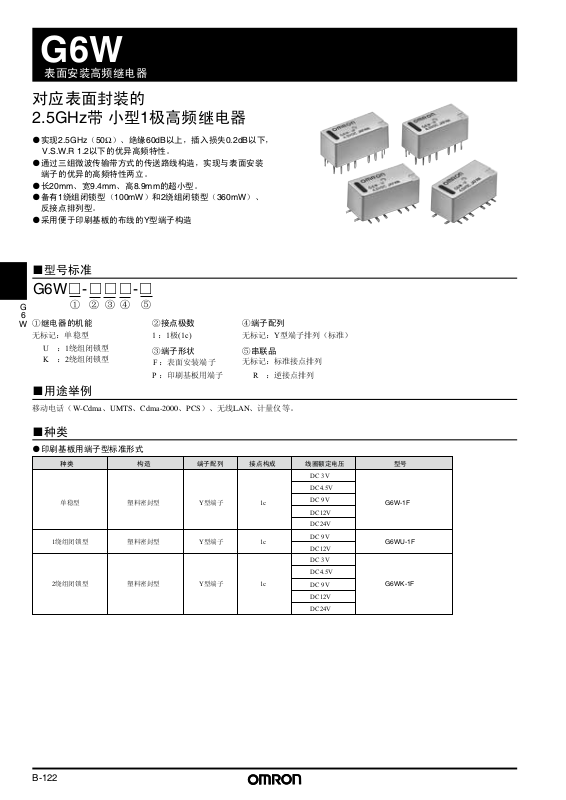 操作线圈/1绕组闭锁型(G6WU-1F、G6WU-1P)