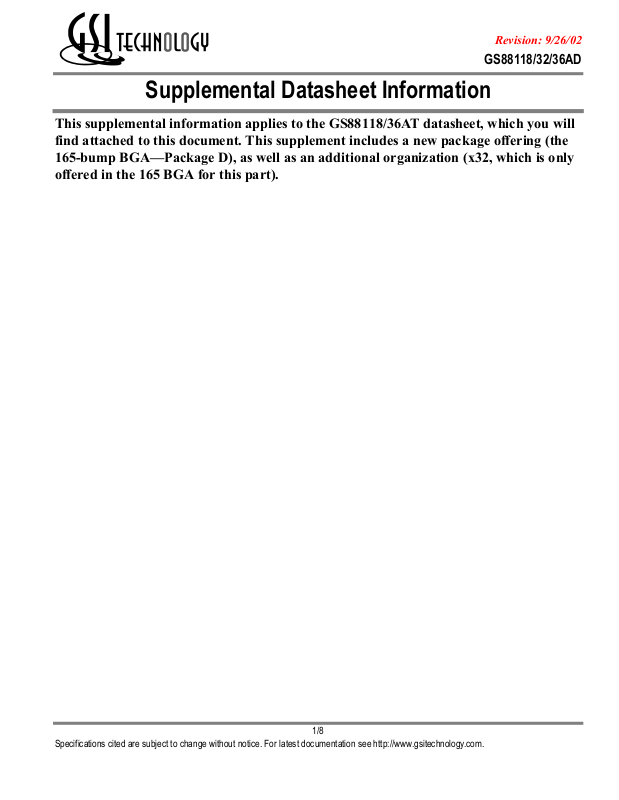Datasheet GS88136AT-250I, GS88136AT-250, GS88136AT-225I, GS88136AT-225, GS88136AT-200I, GS88136AT-200, GS88136AT-166I, GS88136AT-166, GS88136AT-150I, GS88136AT-150, GS88136AT-133I, GS88136AT-133, GS88118AT-166, GS88118AT-150I, GS88118AT-150, GS88118AT-133I, GS88118AT-133, GS88118AT-250I, GS88118AT-250, GS88118AT-225I, GS88118AT-225, GS88118AT-200I, GS88118AT-200, GS88118AT-166I Datasheet (GSI)
