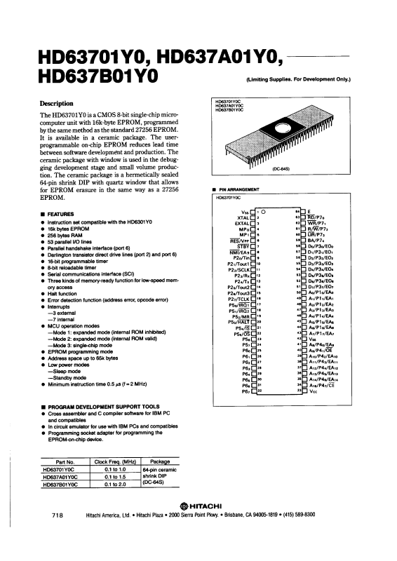 Datasheet HD637A01Y0C, HD63701Y0C Datasheet (HIT)