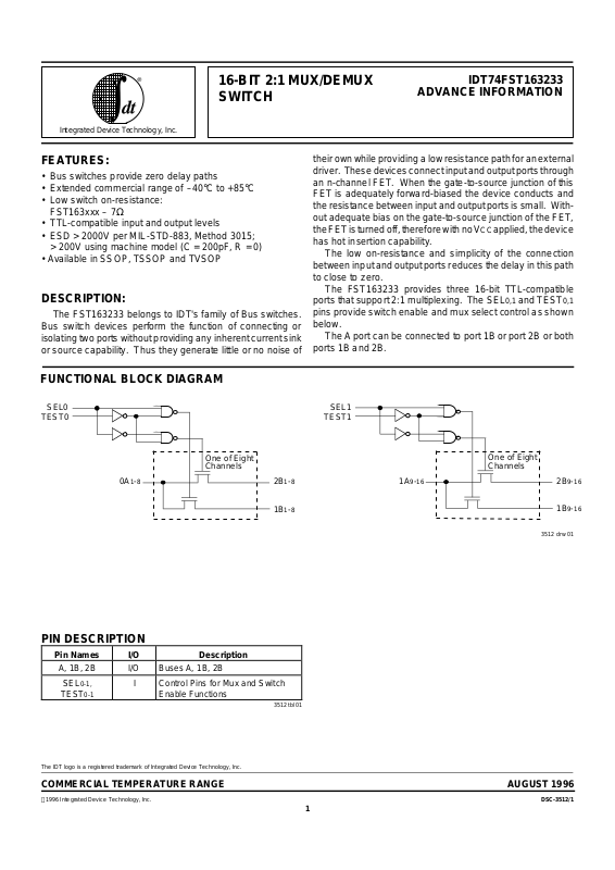 16-BIT 2:1 MUX/DEMUX SWITCH COMMERCIAL TEMPERATURE RANGE