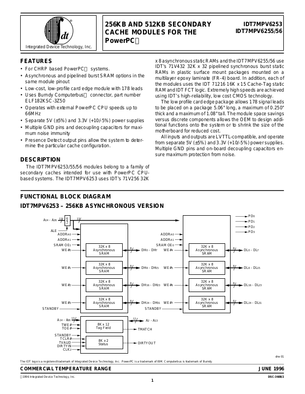 secondary caches intended for use with PowerPC CPUbased systems. The IDT7MPV6253 uses IDT’s 71V256 32K