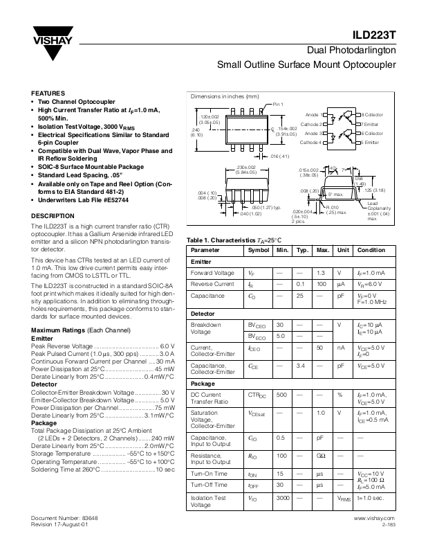 The ILD223T is constructed in a standard SOIC-8A