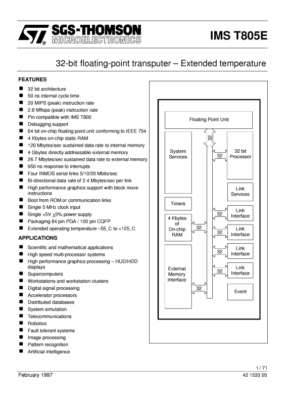 Datasheet IMST805-G20E, IMST805-F20E Datasheet (SGS Thomson Microelectronics)
