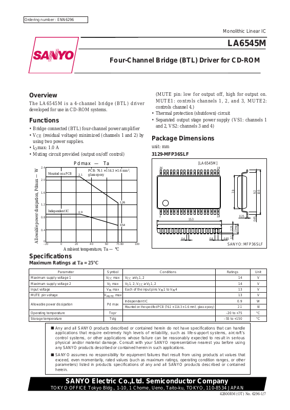 guaranteed for volume production. SANYO believes information herein is accurate and reliable, but