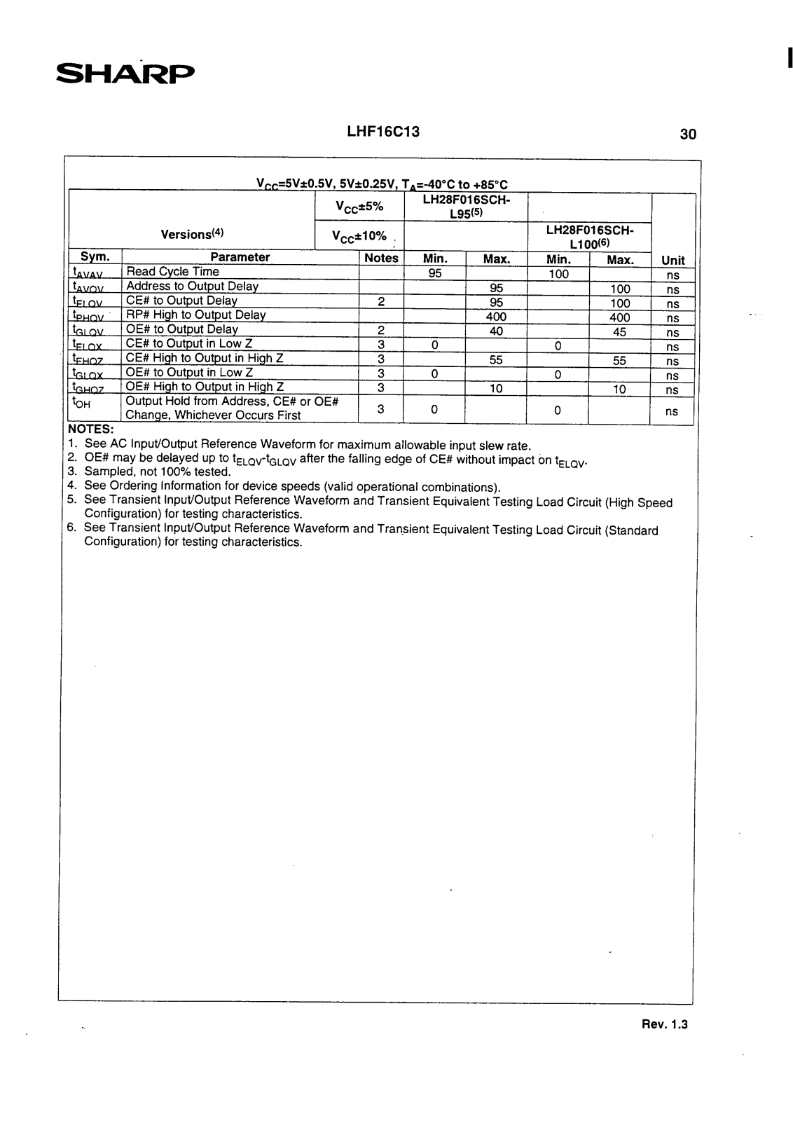 Datasheet LH28F016SCHR-L120, LH28F016SCHR-L100, LH28F016SCHN-L95, LH28F016SCHN-L150, LH28F016SCHN-L100 Datasheet (Sharp)