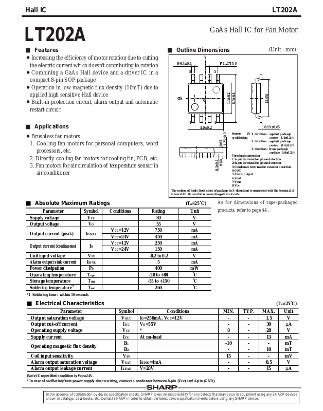 In the absence of confirmation by device specification sheets, SHARP takes no responsibility for any defects that may occur in equipment using any SHARP devices