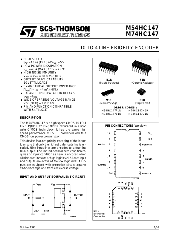 The M54/74HC147 is ahighspeedCMOS10 TO 4