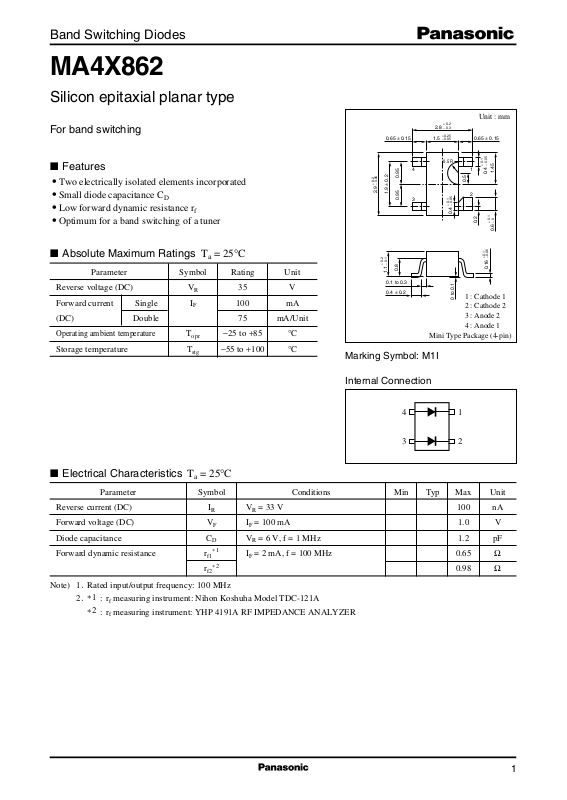 IF = 2 mA, f = 100 MHz 0.65 Ω