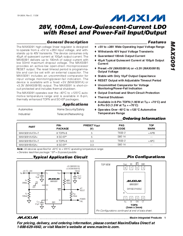 The MAX5091 operates over the -40°C to +125°C automotive temperature range and is available in 8-pin,