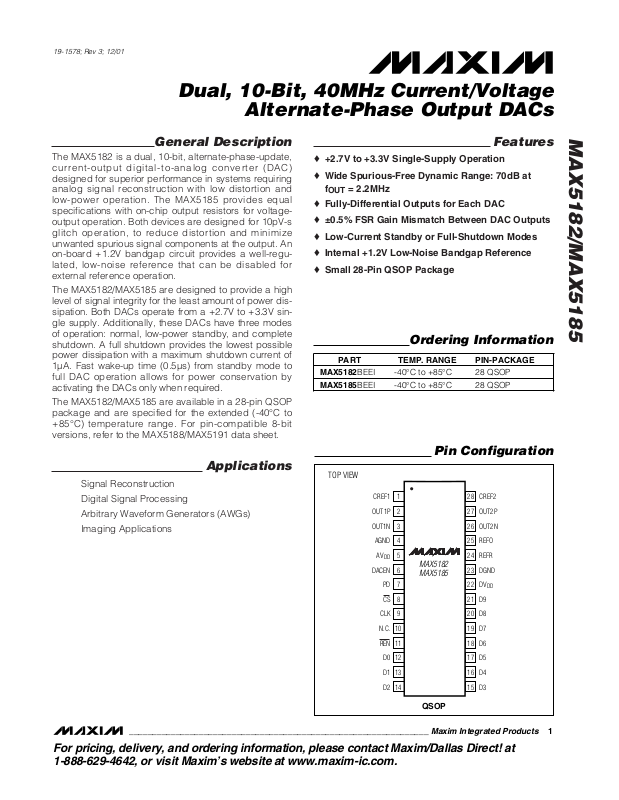 28-Pin QSOP (derate 9.00mW/°C above +70°C)....... 725mW