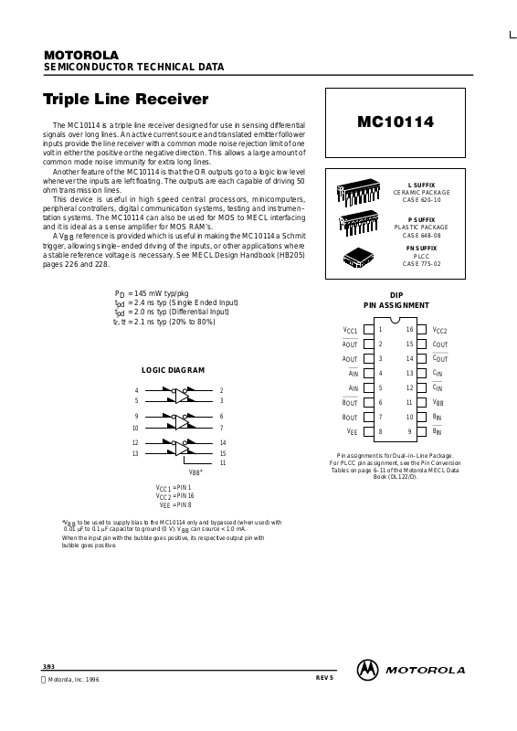 must be validated for each customer application by customer’s technical experts. Motorola does not convey any license under its patent rights nor the rights of