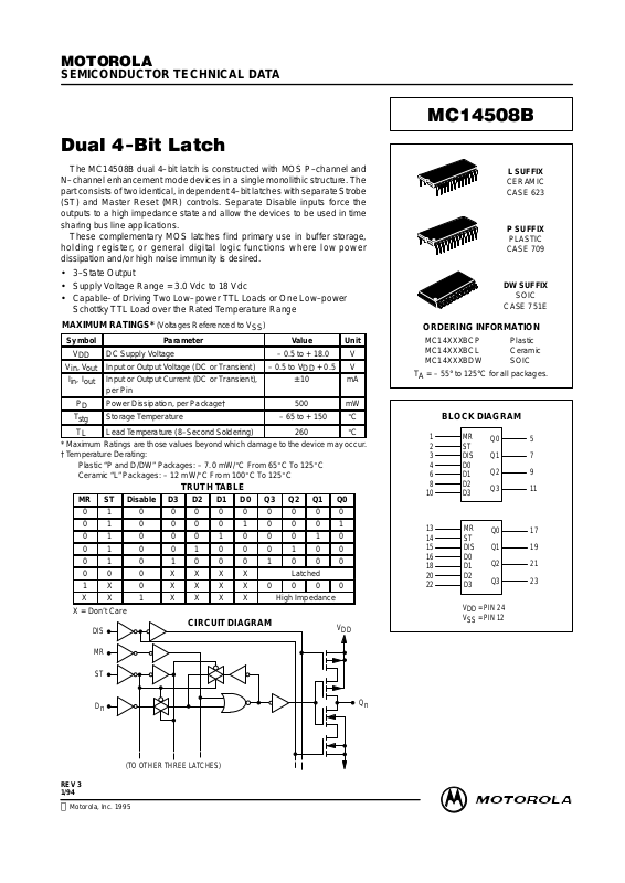 MOTOROLA CMOS LOGIC DATAMC14508B