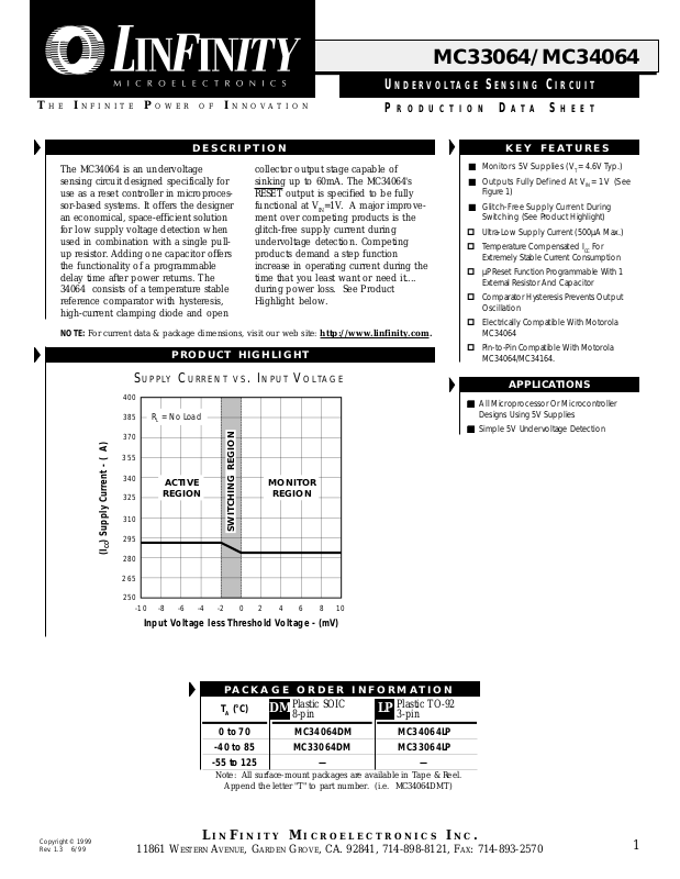 NOTE: For current data & package dimensions, visit our web site: http://www.linfinity.com.