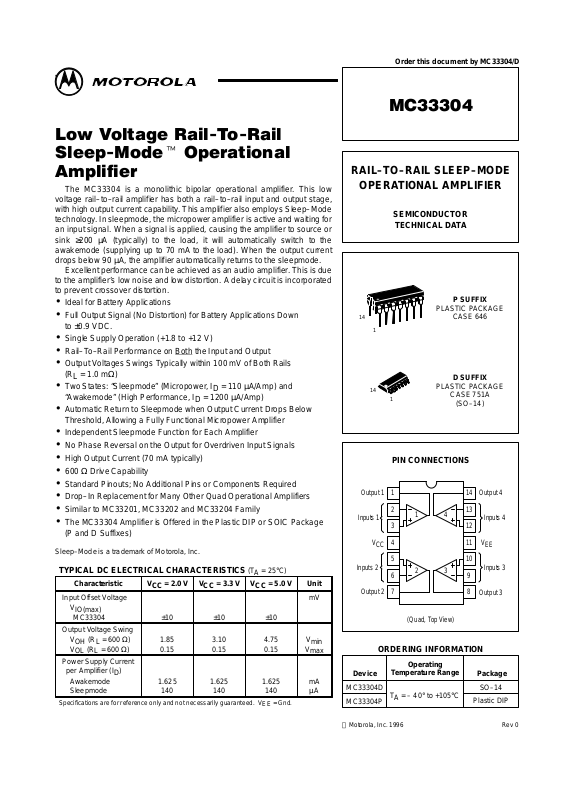 4.Rail–to–rail performance is achieved at the input of the amplifier by using parallel NPN–PNP differential stages. When the inputs are near the