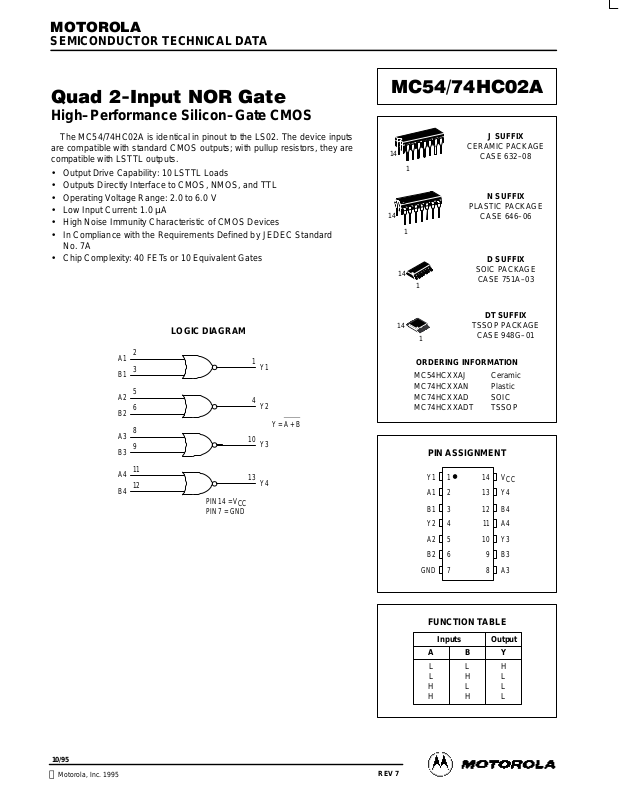 The MC54/74HC02A is identical in pinout to the LS02. The device inputs