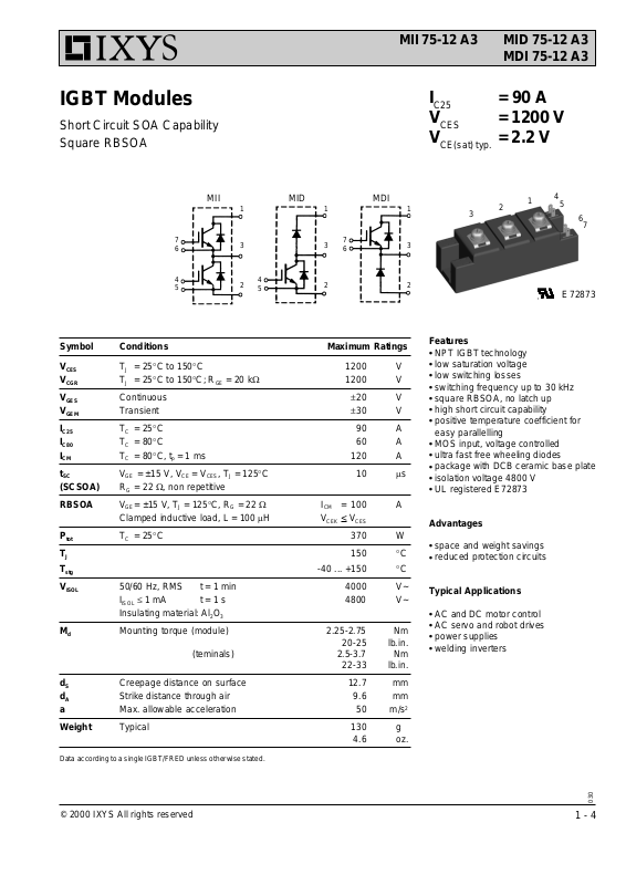 = ±15 V, TJ = 125°C, RG = 22 W ICM = 100 A