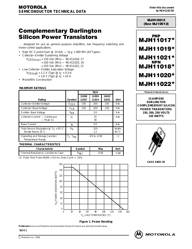 Datasheet MJH11021, MJH11019, MJH11018 Datasheet (MOTOROLA)
