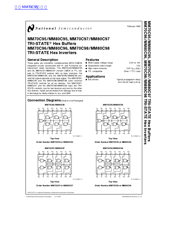 MM70C96/MM80C96 and the MM70C98/MM80C98 provide the logical opposite of the input signal. The MM70C95/