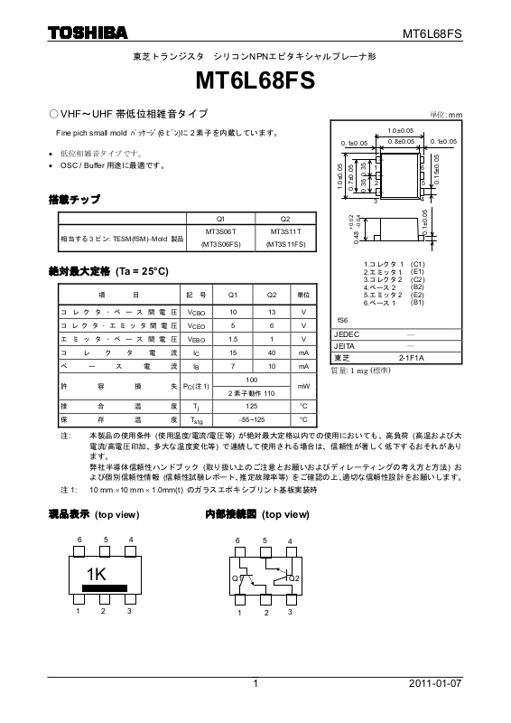 Fine pich small mold パッケージ(6 ピン)に 2 素子を内蔵しています。