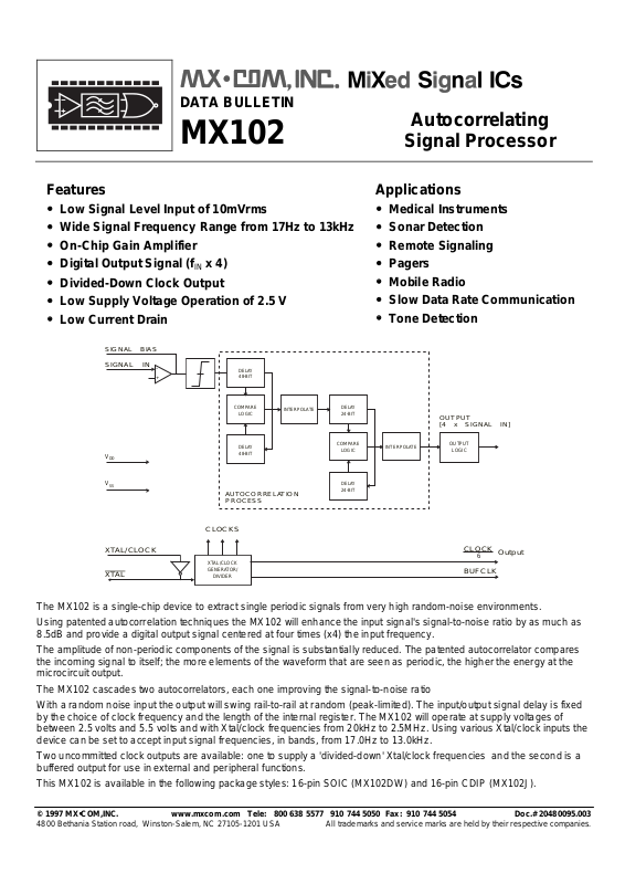 © 1997 MX•COM,INC. www.mxcom.com Tele: 800 638 5577 910 744 5050 Fax: 910 744 5054 Doc.# 20480095.003